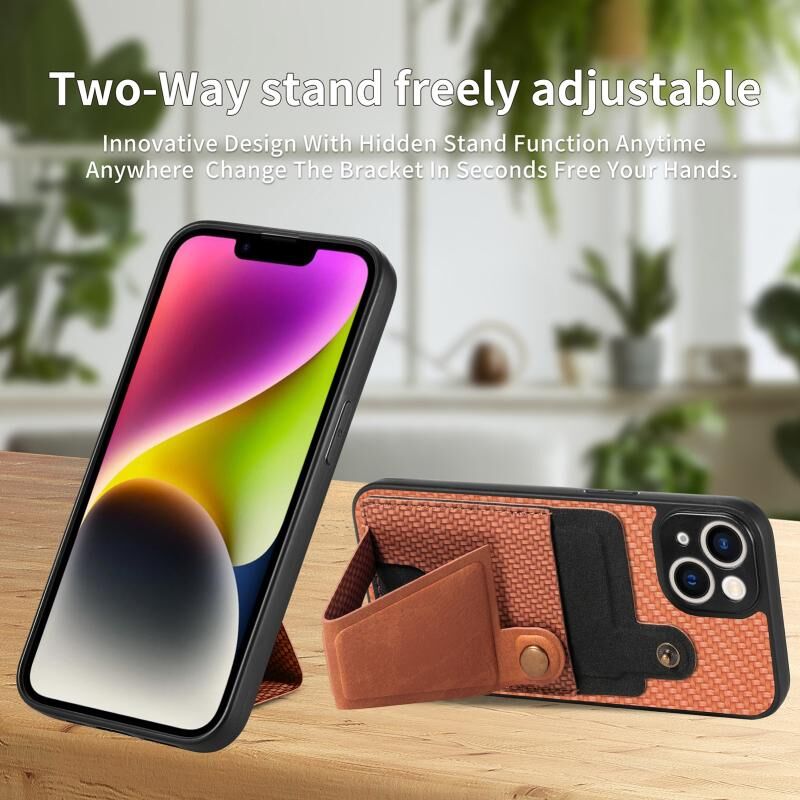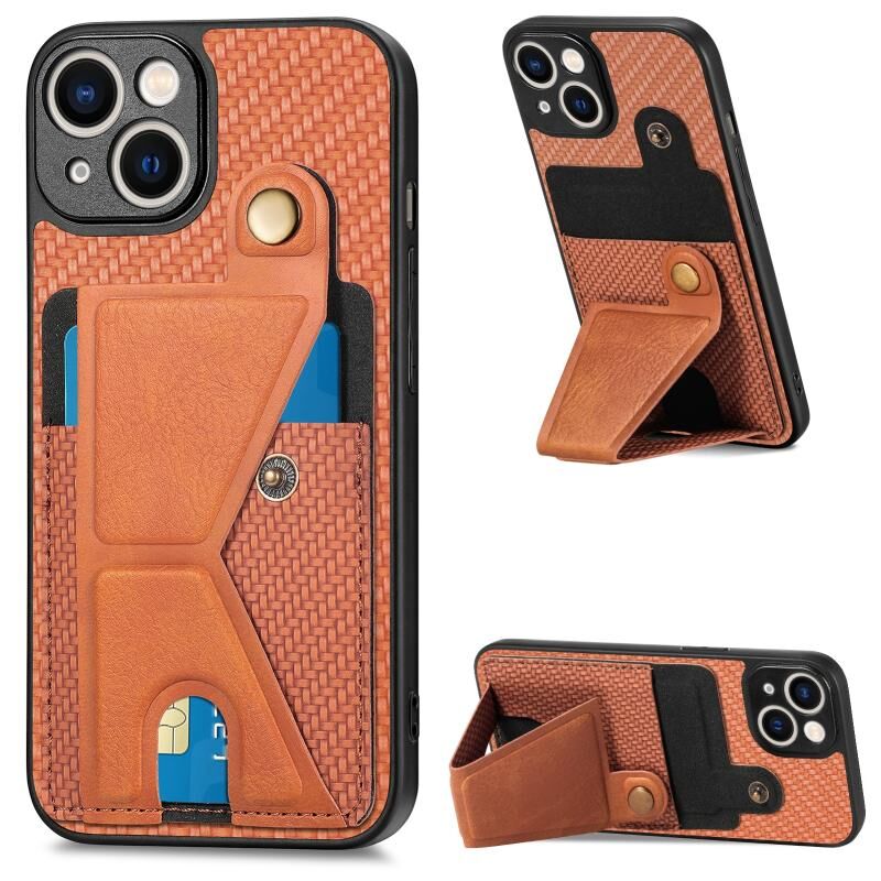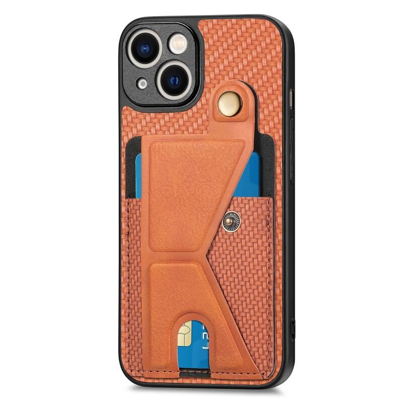 Θήκη κινητού τηλεφώνου για iPhone 14 Plus από ανθρακονήματα, τύπου πορτοφολιού, με κάρτες και σχήμα K (Μαύρο)