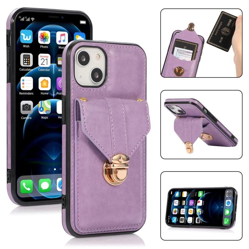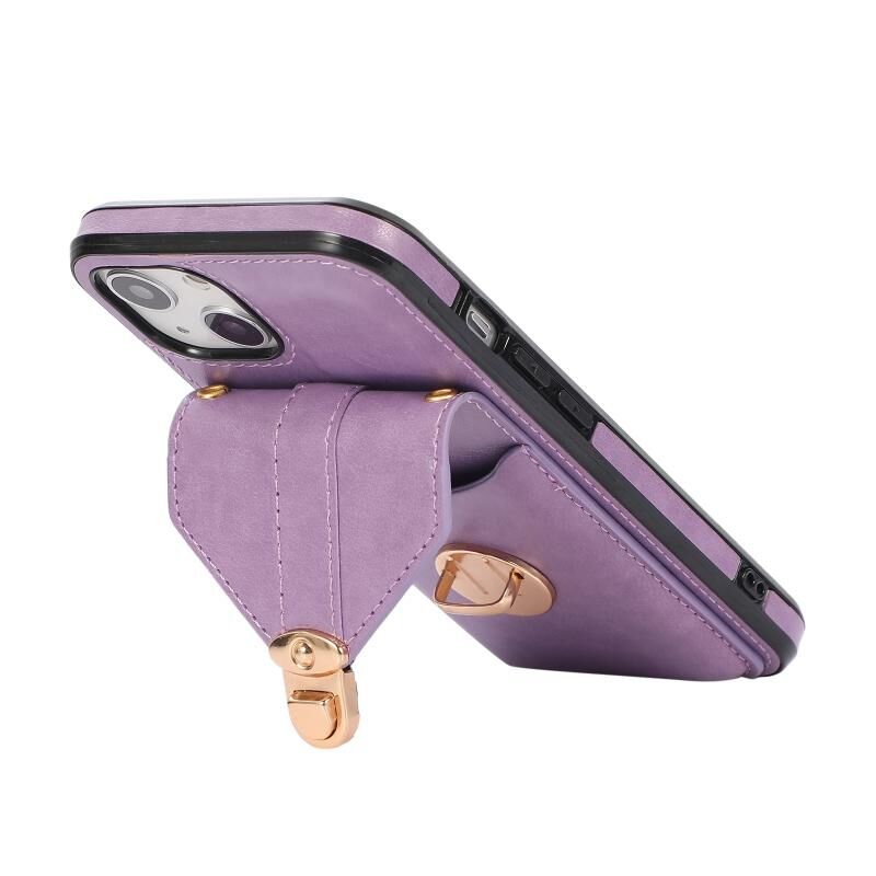Θήκη για iPhone 14 Plus με θήκη κάρτας και κορδόνι (Χρυσό ροζ)