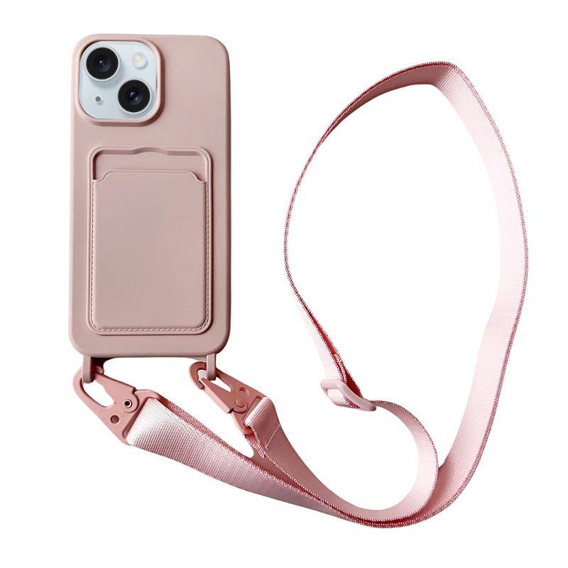 Θήκη για iPhone 14 Plus με θήκη κάρτας, υγρή σιλικόνη με κορδόνι (Σκούρο Μπλε)