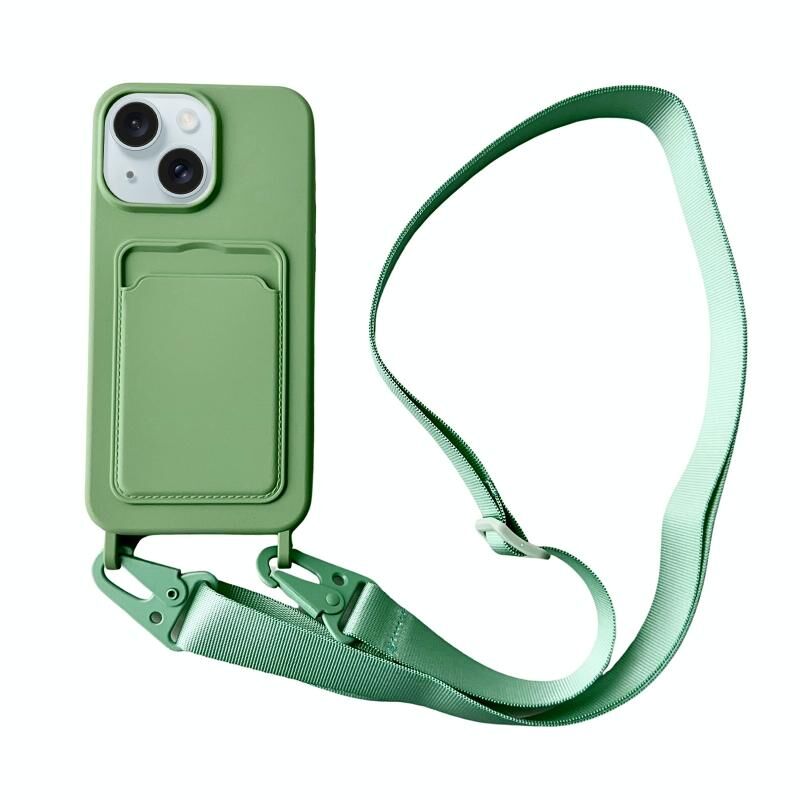 Θήκη για iPhone 14 Plus με θήκη κάρτας, υγρή σιλικόνη με κορδόνι (Μαύρο)