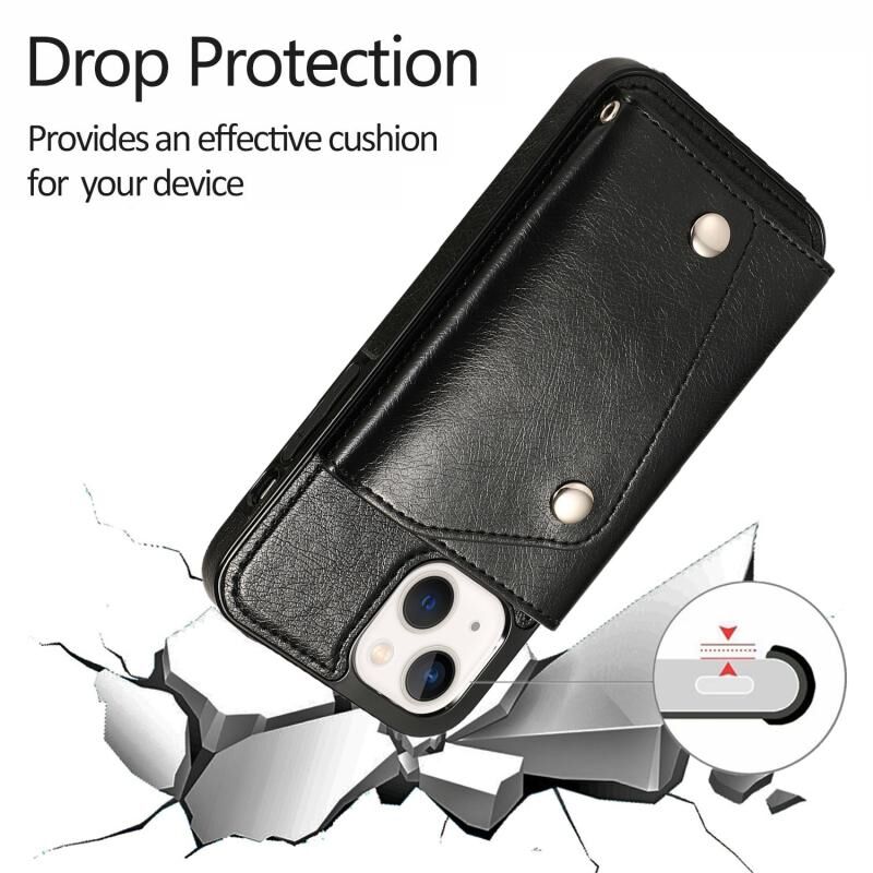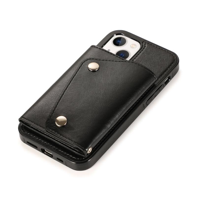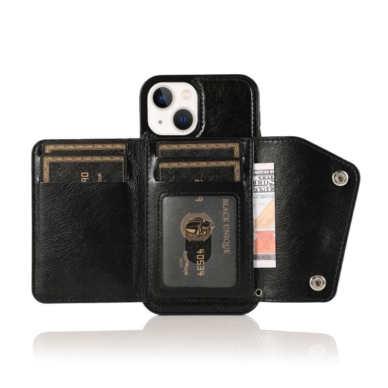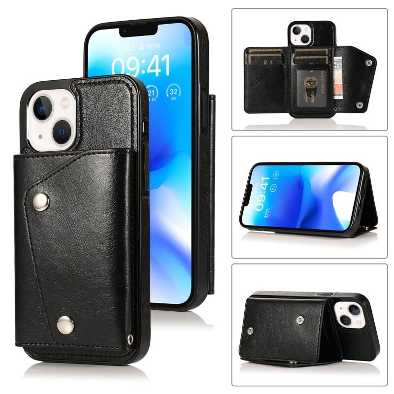 Θήκη τηλεφώνου για iPhone 14 Plus με θήκες καρτών, από δέρμα PU + TPU (Μαύρο)