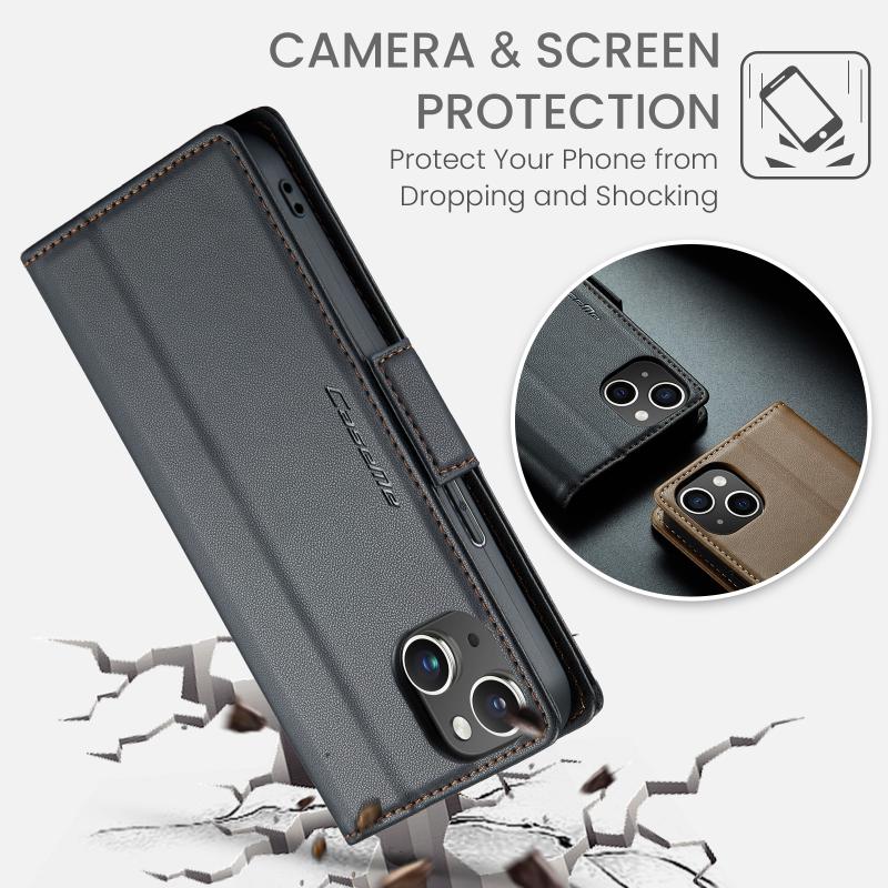 For iPhone 14 Plus CaseMe 023 Butterfly Buckle Litchi Texture RFID Anti-theft Leather Phone Case(Black) (CaseMe)