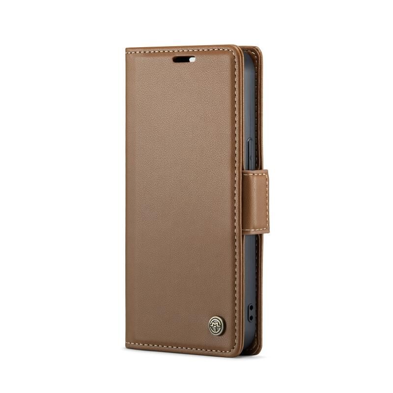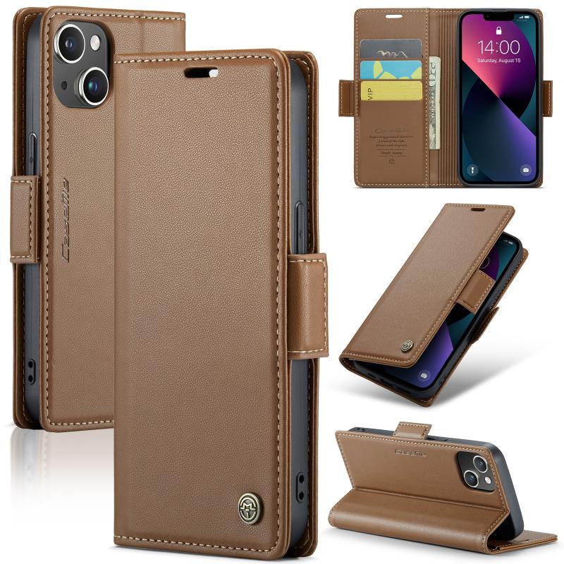 For iPhone 14 Plus CaseMe 023 Butterfly Buckle Litchi Texture RFID Anti-theft Leather Phone Case(Brown) (CaseMe)