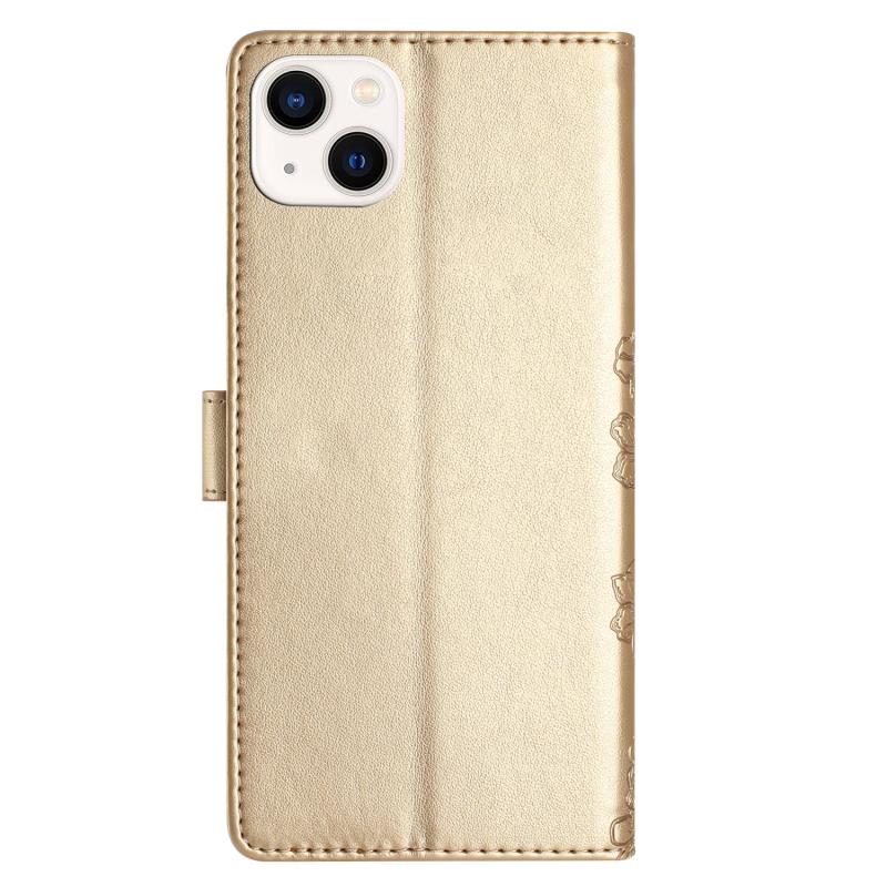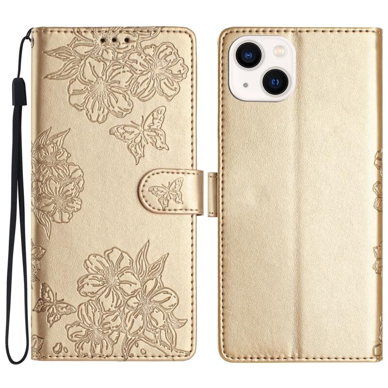 Θήκη iPhone 14 Plus Cherry Blossom Butterfly, ανάγλυφη PU (Χρυσό)