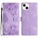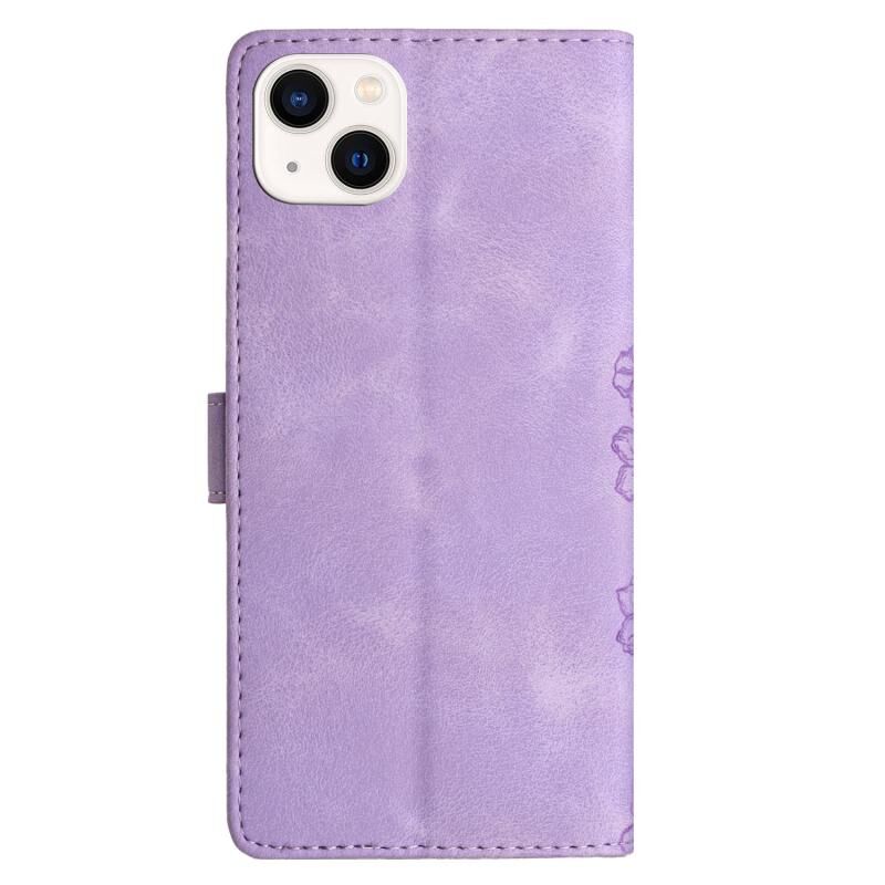 For iPhone 14 Plus Cherry Blossom Butterfly Skin Feel Embossed PU Phone Case(Purple)