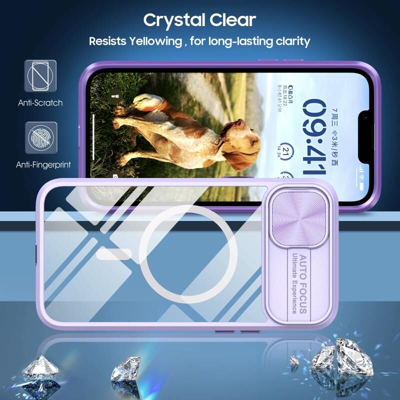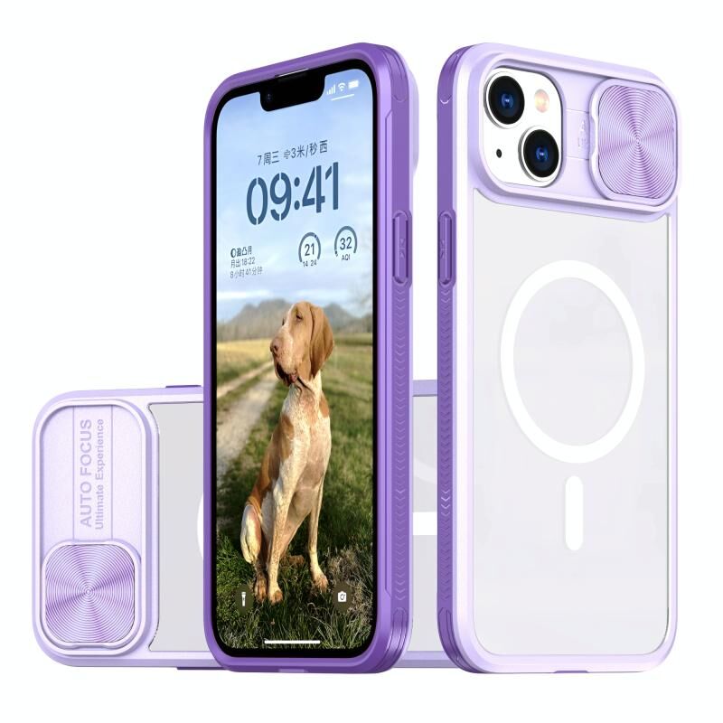 Θήκη κινητού τηλεφώνου πλήρους κάλυψης για iPhone 14 Plus, διαφανές ακρυλικό + PC + TPU, με συρόμενο κάλυμμα φακού MagSafe (Ναυτικό Μπλε)