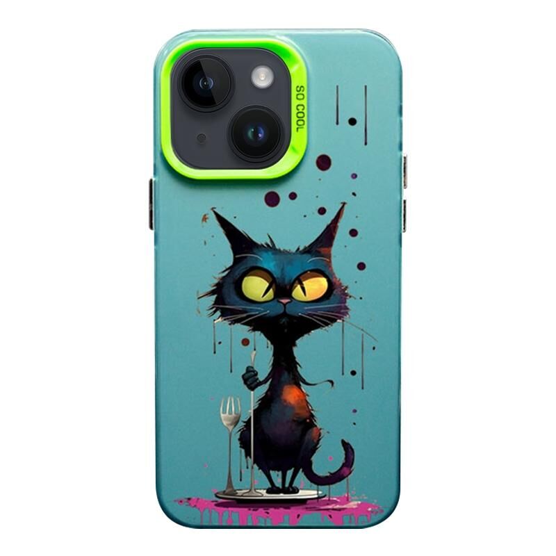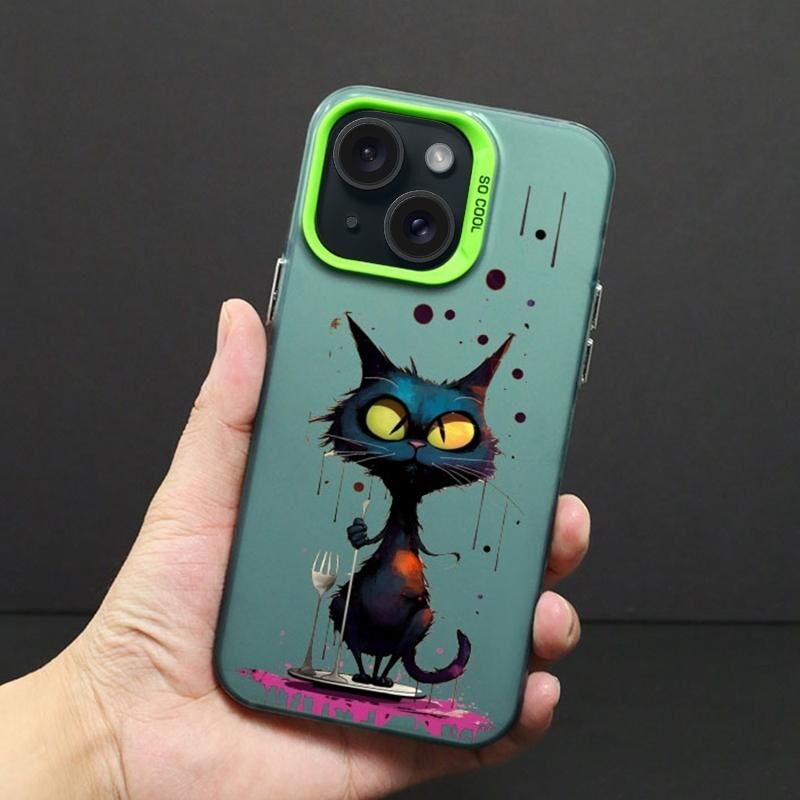 Θήκη τηλεφώνου για iPhone 14 Plus, με σχέδιο μελάνι, παγωμένο PC+TPU (Μαύρη Γάτα)
