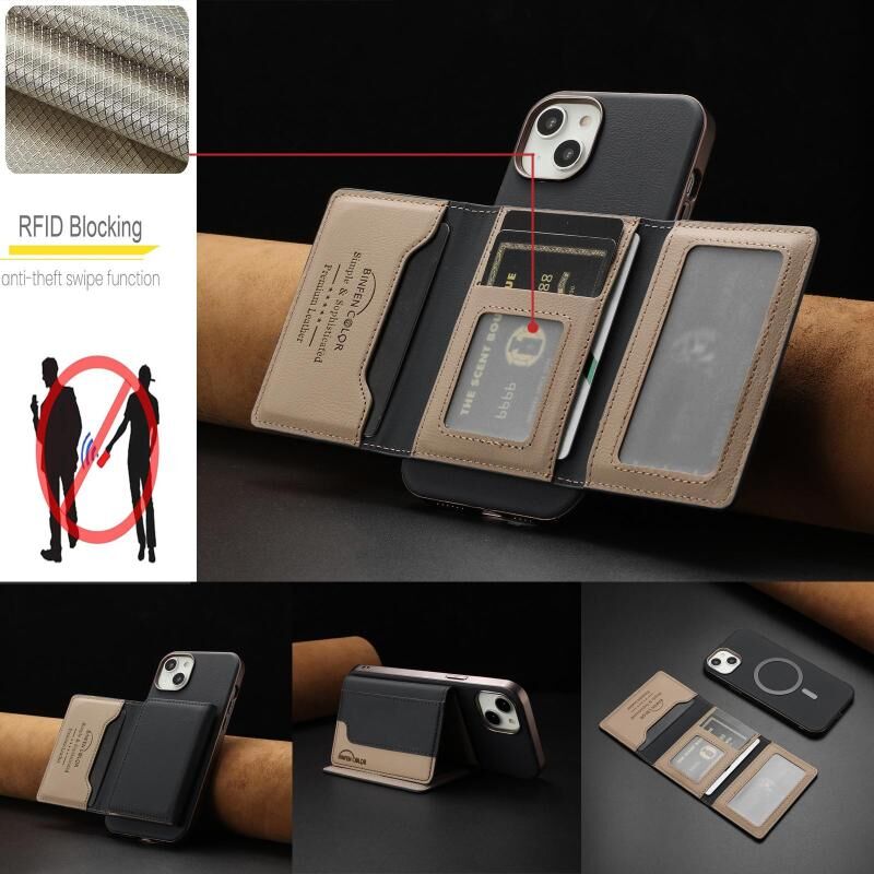 2. Magnetic Tri-Fold Wallet Design: Features a horizontal fold with a strong magnetic closure for easy access and secure storage.