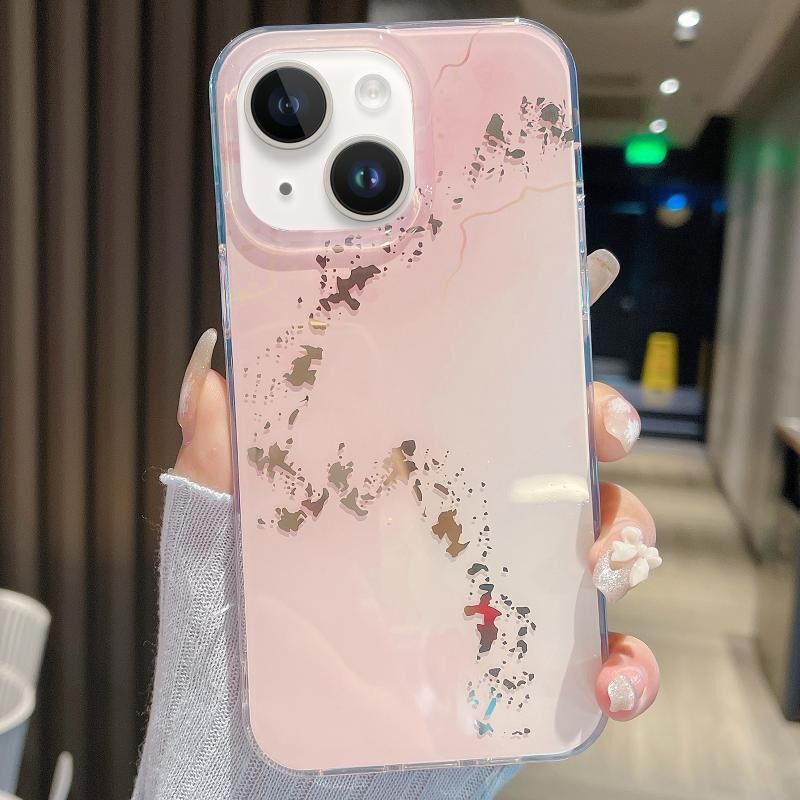 Θήκη τηλεφώνου με γυαλιστερό μαρμάρινο σχέδιο για iPhone 14 Plus (Ροζ Χρυσό)