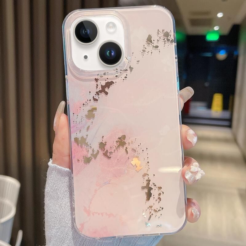 Θήκη τηλεφώνου με γυαλιστερό μαρμάρινο σχέδιο για iPhone 14 Plus (Ροζ Χρυσό)