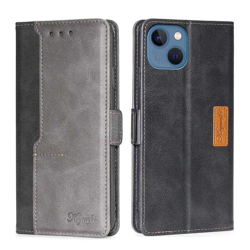 Θήκη τηλεφώνου από δέρμα με πλαϊνή αγκράφα σε αντίθετα χρώματα για iPhone 14 Plus (Μωβ + Κόκκινο του Ρόδου)