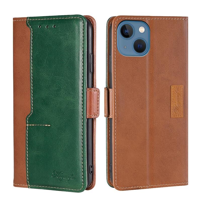 Θήκη τηλεφώνου από δέρμα με πλαϊνή αγκράφα σε αντίθετα χρώματα για iPhone 14 Plus (Μωβ + Κόκκινο του Ρόδου)