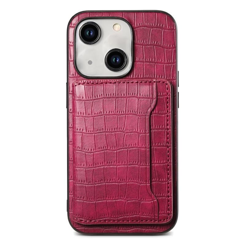Θήκη κινητού τηλεφώνου πλήρους κάλυψης για iPhone 14 Plus με σχέδιο τσάντας κάρτας υφής κροκόδειλου (Καφέ)