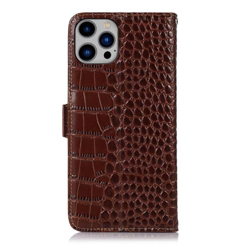 Θήκη Δερμάτινη για iPhone 14 Plus - Αληθινό Δέρμα Κροκόδειλου (Καφέ)