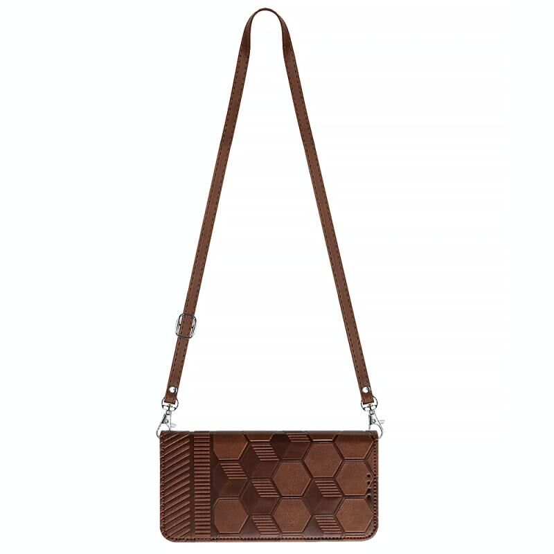 Θήκη iPhone 14 Plus Δερμάτινη με Σταυρωτό Λουρί & Υφή Μπάλας Ποδοσφαίρου (Καφέ)