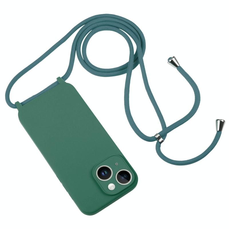 Θήκη iPhone 14 Plus με Λουρί & Υγρή Σιλικόνη (Πράσινο Πεύκου)