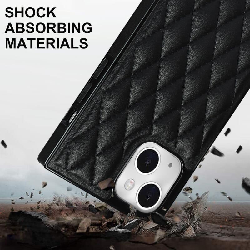 Θήκη κινητού τηλεφώνου για iPhone 14 Plus, τύπου crossbody, από μικροΐνες με ρόμβους (Λευκό)