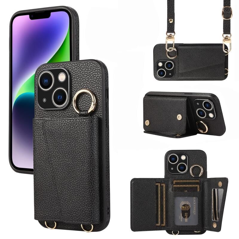 Θήκη κινητού τηλεφώνου για iPhone 14 Plus, δερμάτινη θήκη πλάτης με δακτύλιο και θήκη για κάρτες (Μπλε)