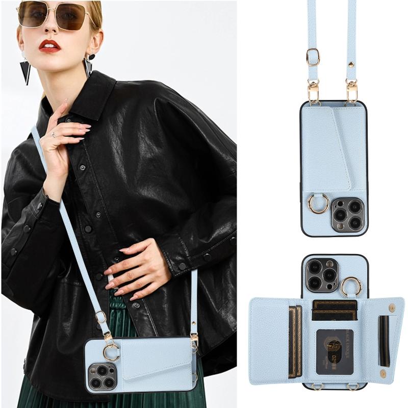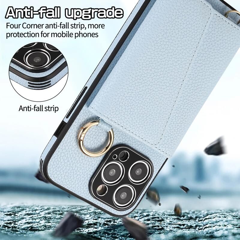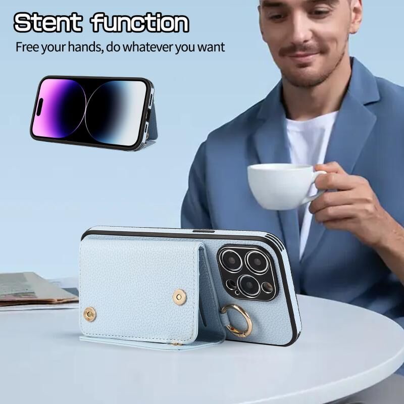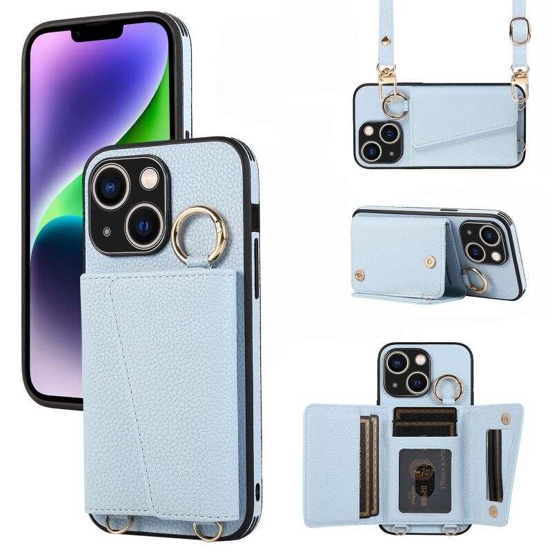 Θήκη κινητού τηλεφώνου για iPhone 14 Plus, δερμάτινη θήκη πλάτης με δακτύλιο και θήκη για κάρτες (Μπλε)