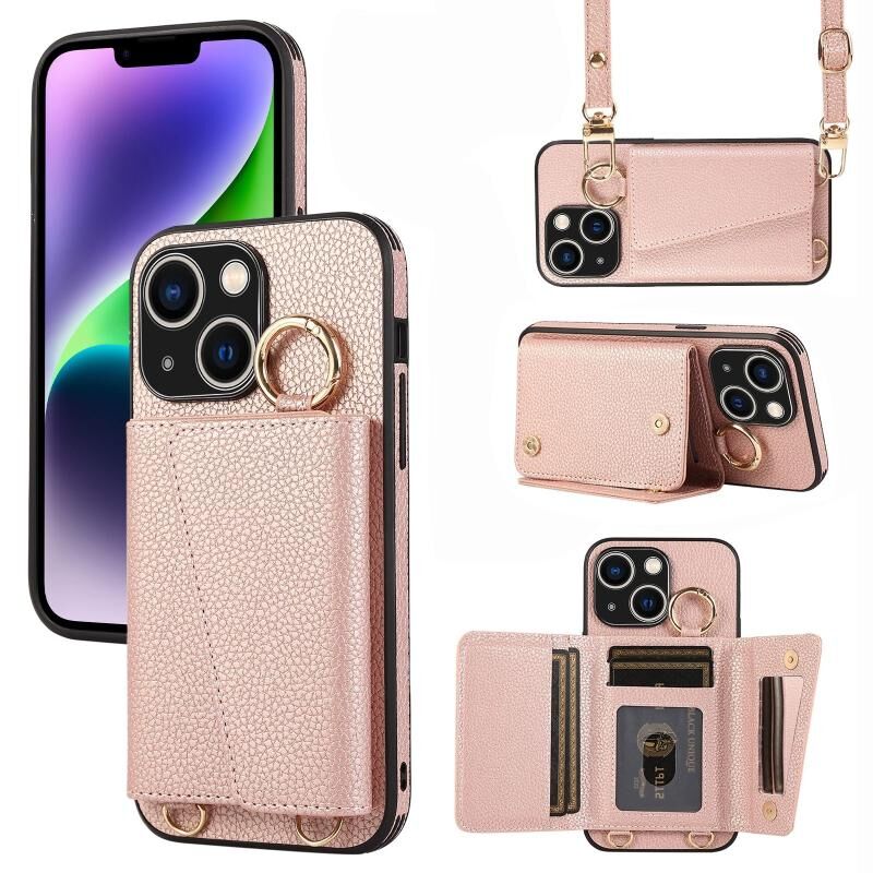 Θήκη κινητού τηλεφώνου για iPhone 14 Plus, δερμάτινη θήκη πλάτης με δακτύλιο και θήκη για κάρτες (Μπλε)