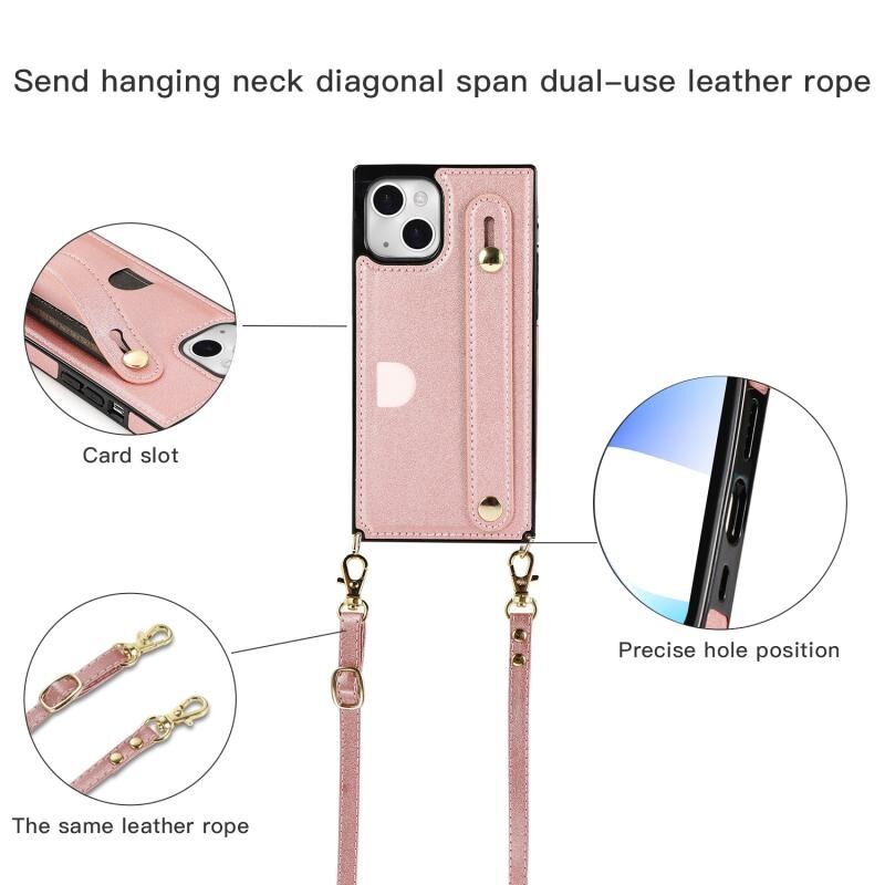Θήκη τηλεφώνου για iPhone 14 Plus με λουρί καρπού και θήκη καρτών (Χρυσό ροζ)