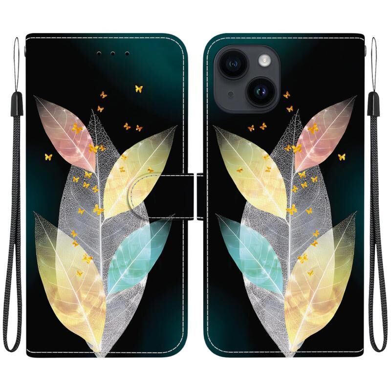 Θήκη τηλεφώνου από δέρμα με πολύχρωμο σχέδιο και κρυσταλλική υφή για iPhone 14 Plus (Χρωματιστά Φύλλα)
