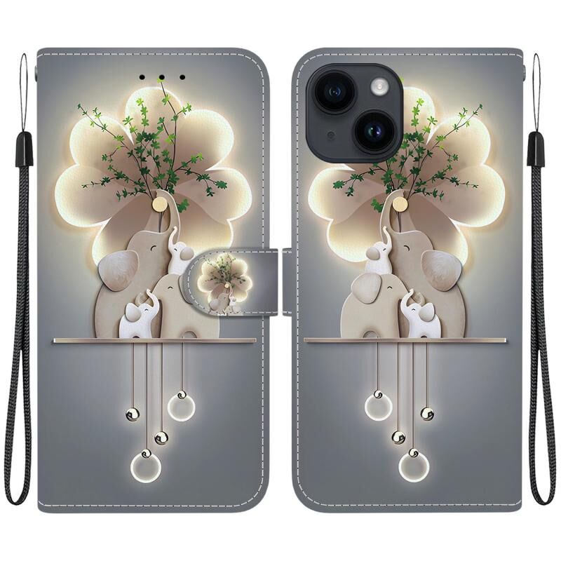 Θήκη τηλεφώνου από δέρμα με πολύχρωμο σχέδιο κρυστάλλινης υφής για iPhone 14 Plus (Ελέφαντες)