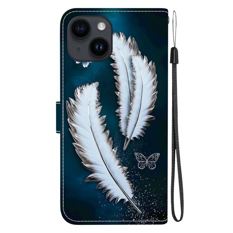 Θήκη τηλεφώνου από δέρμα με χρωματιστή σχεδίαση κρυστάλλινης υφής για iPhone 14 Plus (Λευκά Φτερά Πεταλούδας)