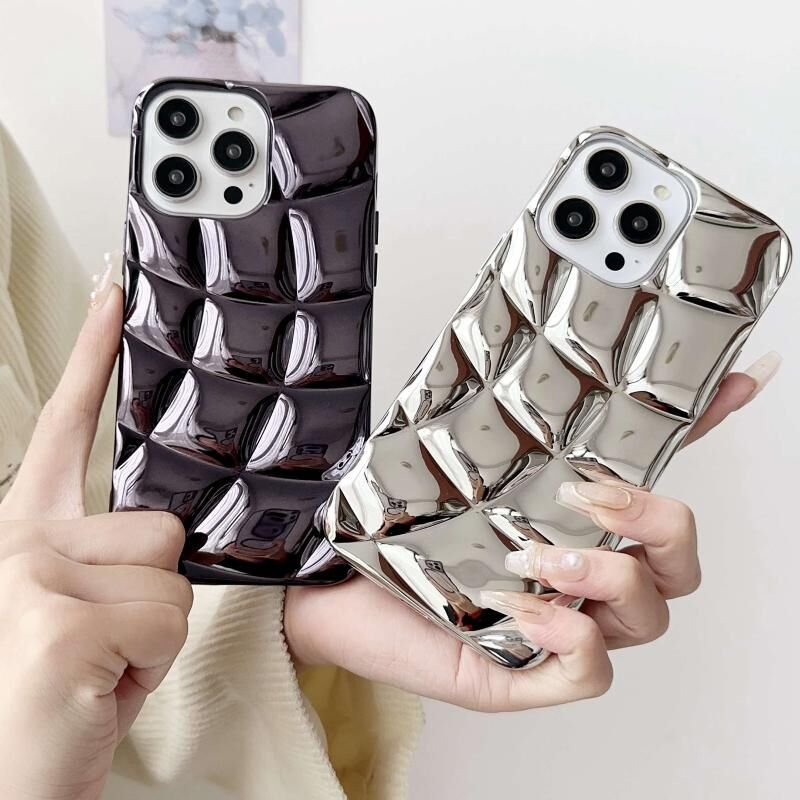 Θήκη τηλεφώνου TPU με μεταλλική βαφή, καμπυλωτό καρό σχέδιο, για iPhone 14 Plus (Ροζ)