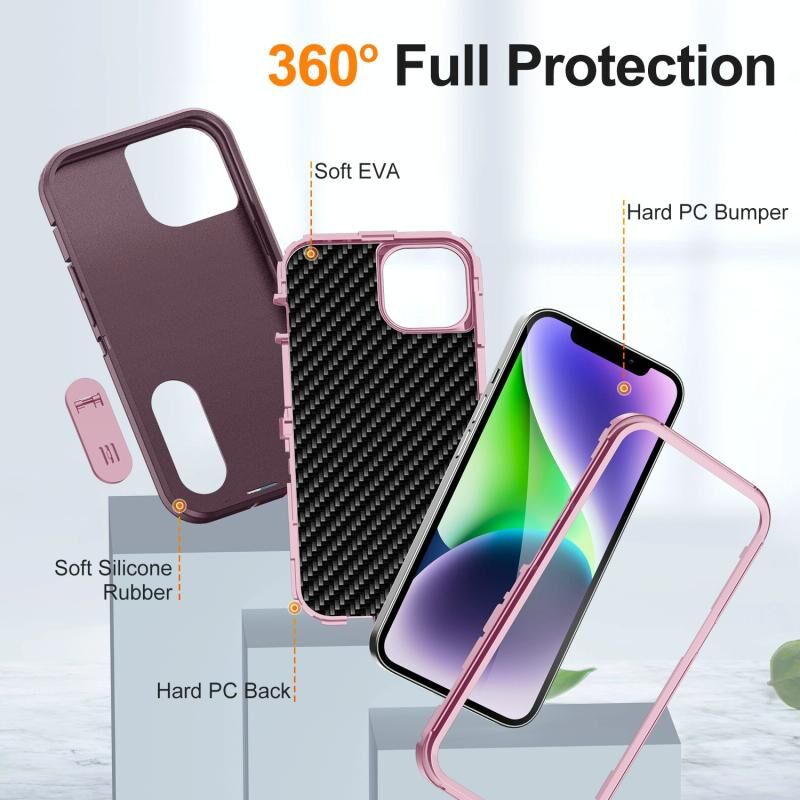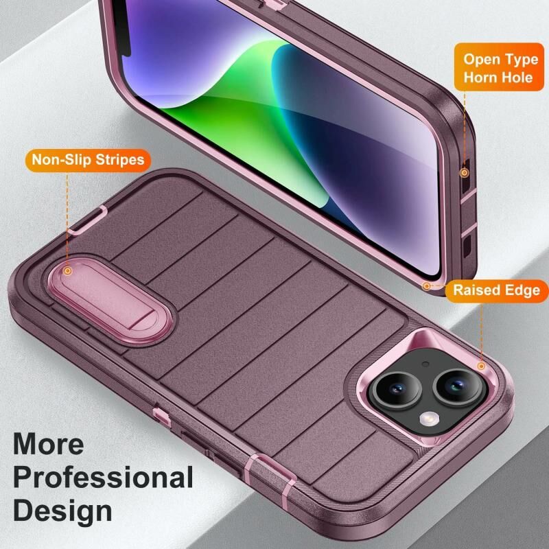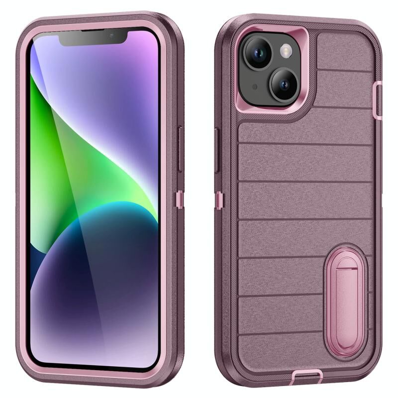 Θήκη κινητού τηλεφώνου για iPhone 14 Plus Defender Gen2, ανθεκτική από πολυανθρακικό + σιλικόνη με βάση στήριξης (Σκούρο Πράσινο + Κυανό)