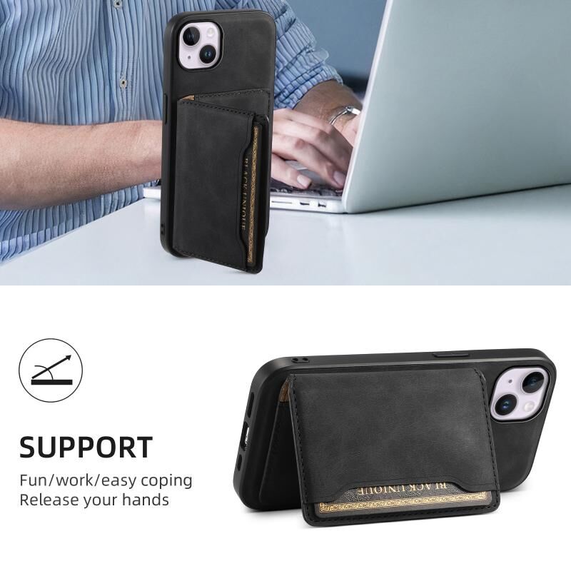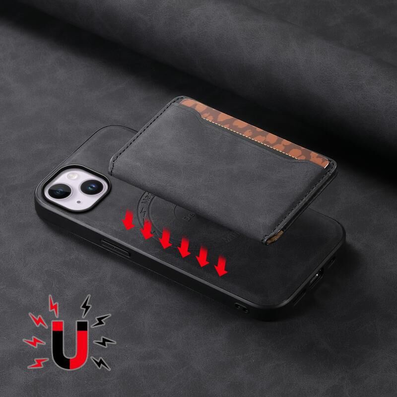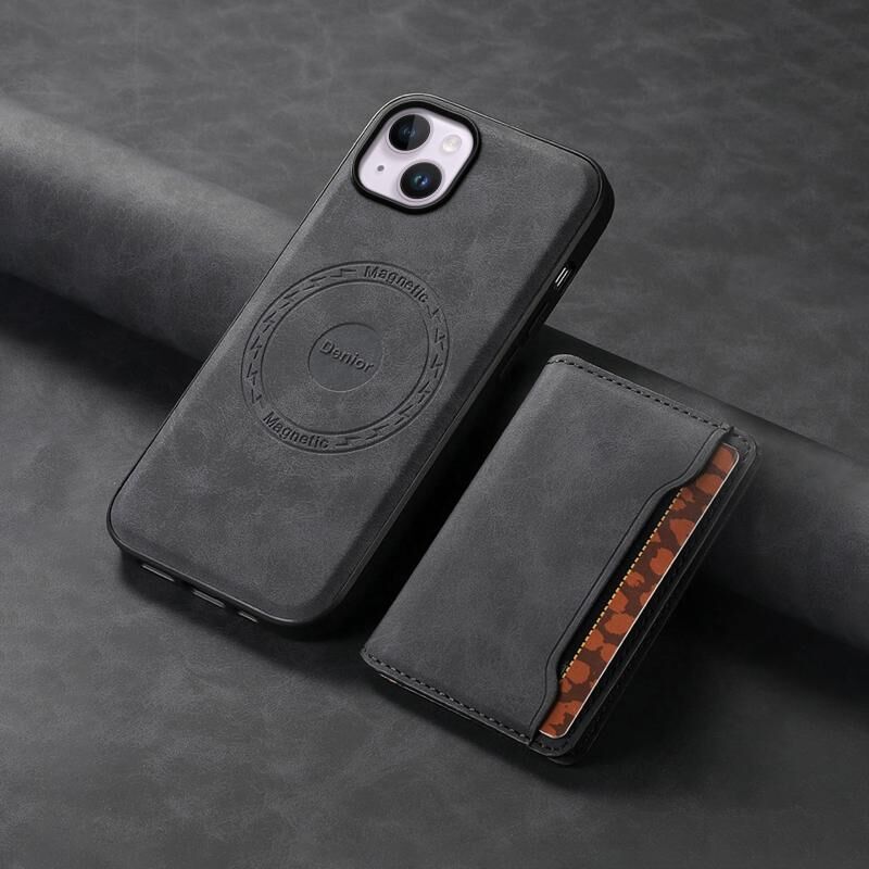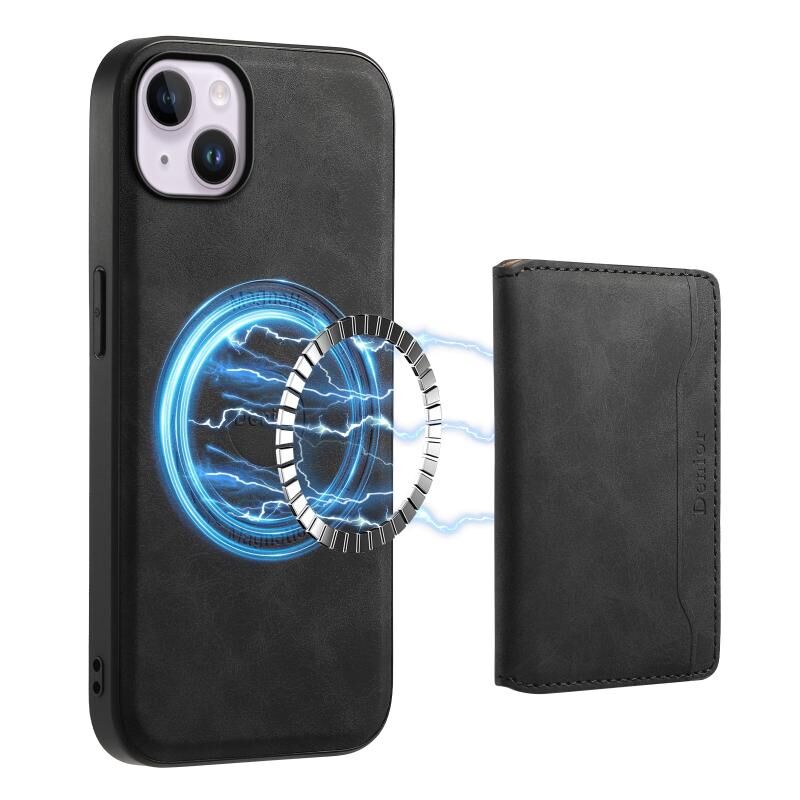 Θήκη τηλεφώνου για iPhone 14 Plus Denior D13 με υφή retro δέρματος και θήκη καρτών MagSafe (Μαύρο) (Denior)