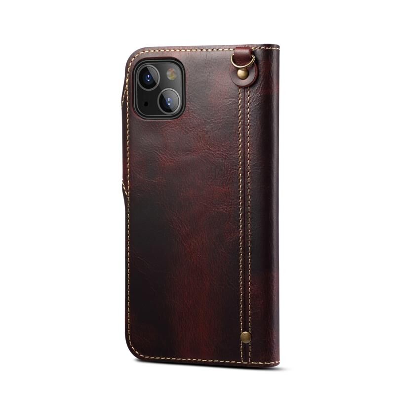 Θήκη για iPhone 14 Plus από γνήσιο δέρμα αγελάδας με κερί λαδιού Denior, με μαγνητικό κούμπωμα (Σκούρο Μπλε) (Denior)