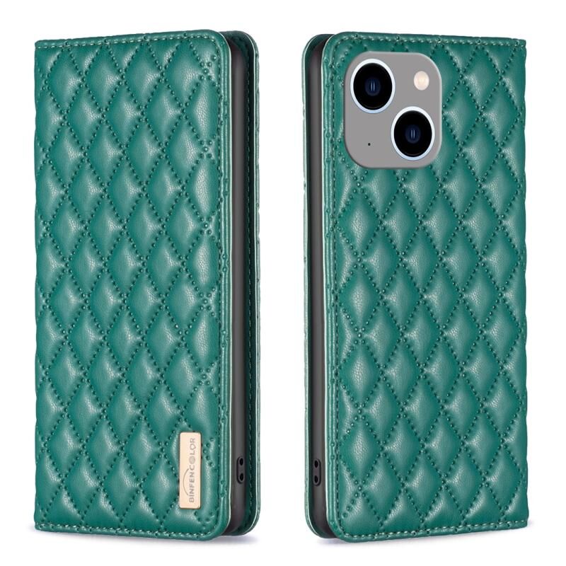 Θήκη τηλεφώνου τύπου flip από δέρμα με μαγνητικό πλέγμα διαμαντιών για iPhone 14 Plus (Μπλε)