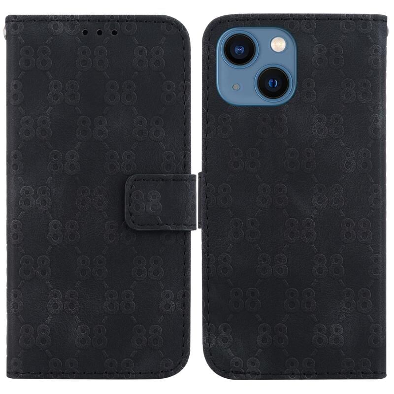 Θήκη τηλεφώνου από δέρμα με ανάγλυφο διπλό σχέδιο σε σχήμα 8 για iPhone 14 Plus (Μωβ)
