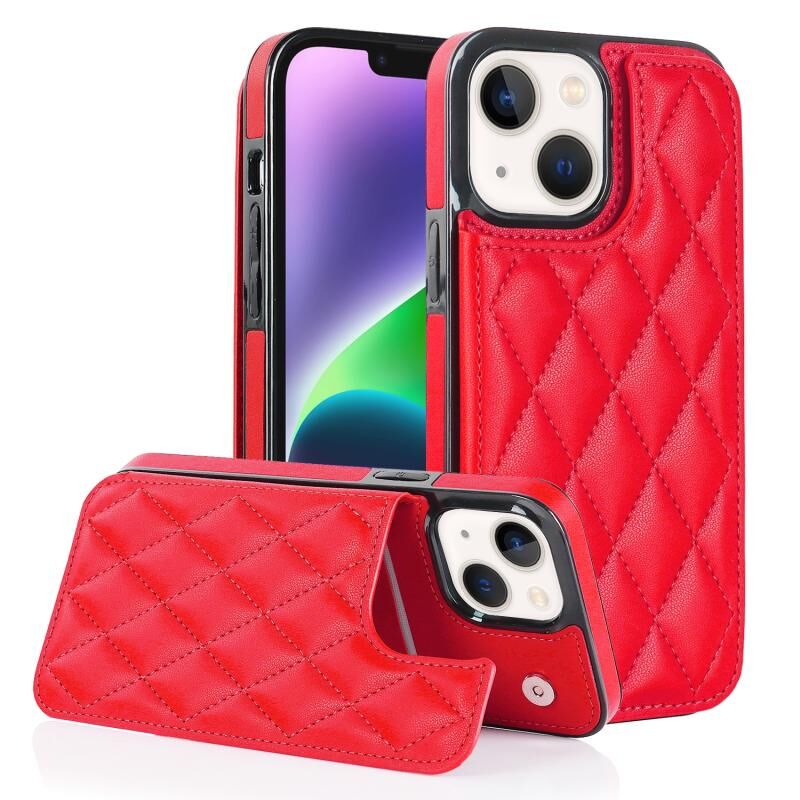 Θήκη τηλεφώνου για iPhone 14 Plus, Διπλή Αγκράφα, Ρομβικό Δερμάτινο PU (Λευκό)
