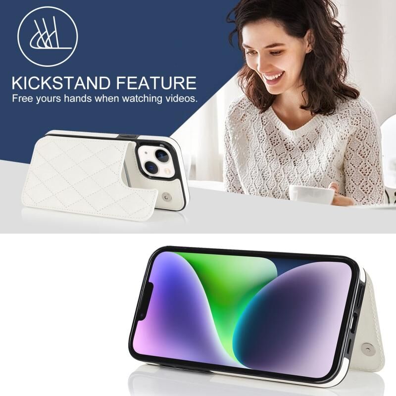 Θήκη τηλεφώνου για iPhone 14 Plus, Διπλή Αγκράφα, Ρομβικό Δερμάτινο PU (Λευκό)