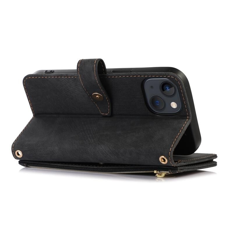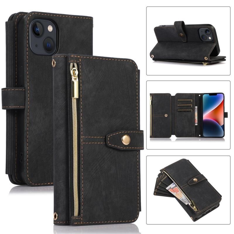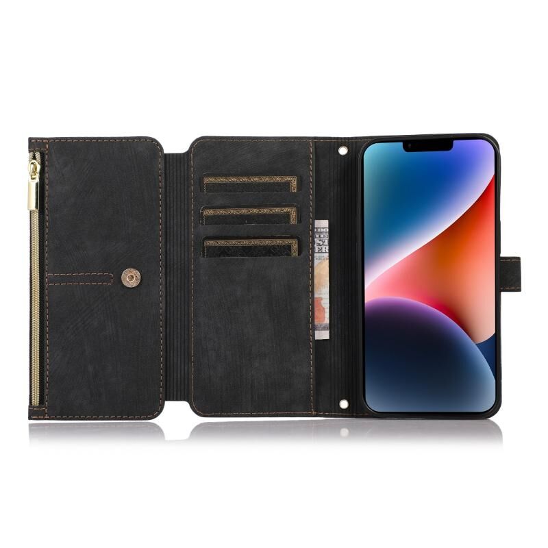 Θήκη τηλεφώνου δερμάτινη με φερμουάρ και θήκη για 9 κάρτες για iPhone 14 Plus Dream (Πράσινο)