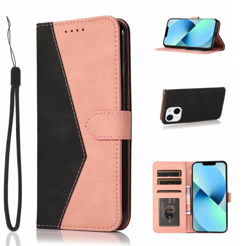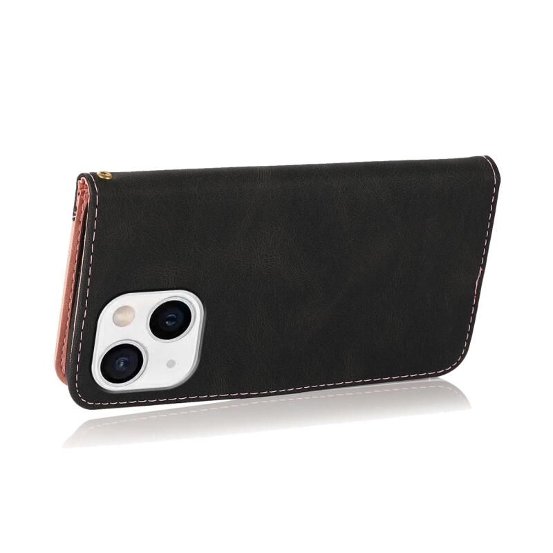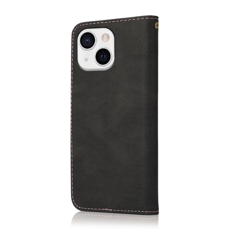 Θήκη τηλεφώνου από δέρμα με διπλή ραφή για iPhone 14 Plus (Κόκκινο Μπλε)
