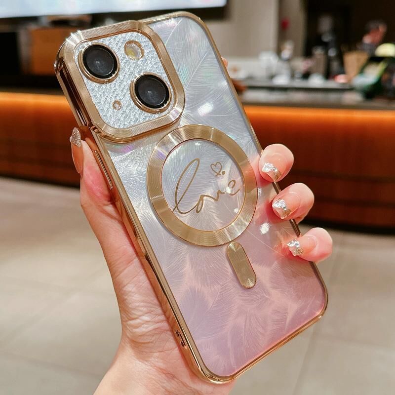 Θήκη τηλεφώνου TPU με μαγνητική σύνδεση Magsafe, διαφανές σχέδιο με φτερά και ιριδίζοντα χρώματα για iPhone 14 Plus (Χρυσό)