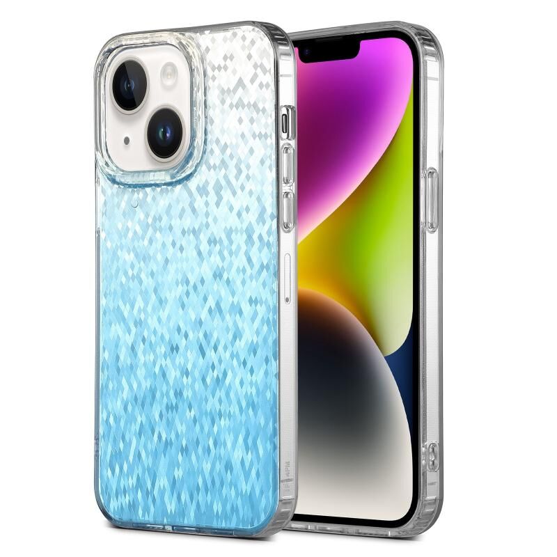 Θήκη τηλεφώνου για iPhone 14 Plus, Dynamic Colorful Rhombus Diamond Series, PC + TPU (Μωβ)