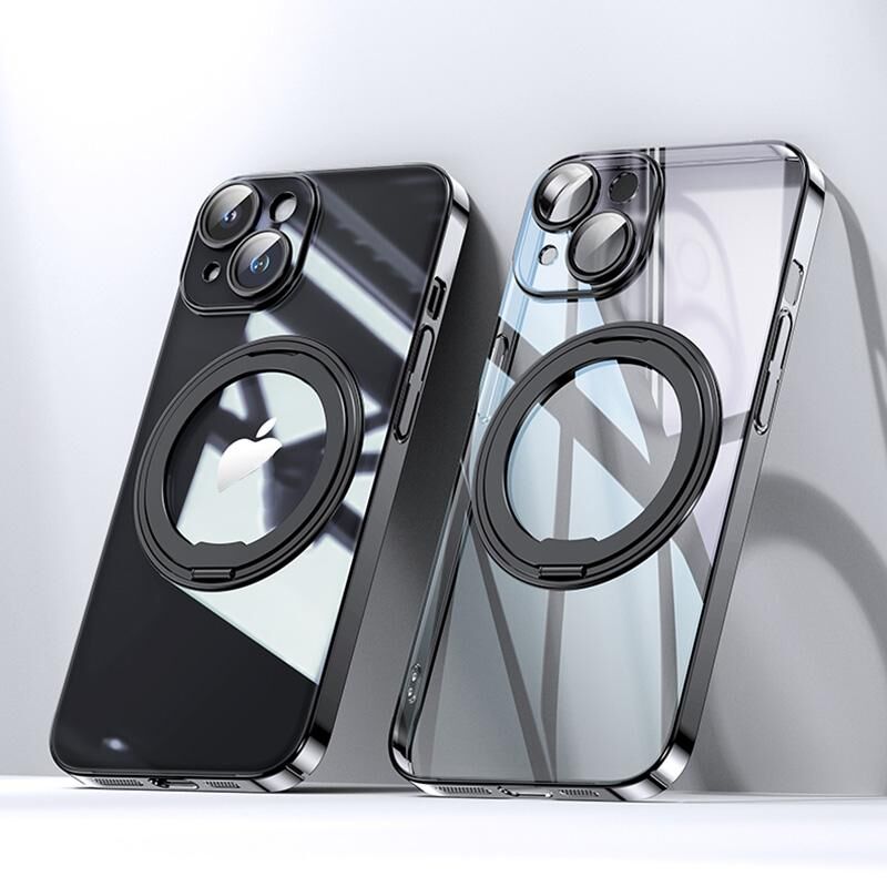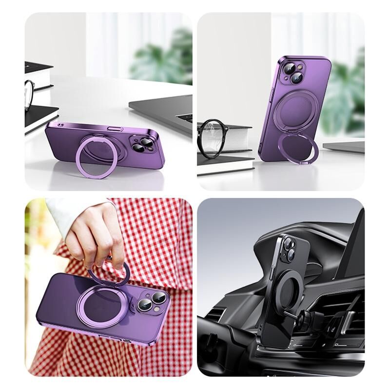 Θήκη τηλεφώνου MagSafe με μαγνητική βάση 360 μοιρών, επιμεταλλωμένη, για iPhone 14 Plus (Διαφανές Μωβ)