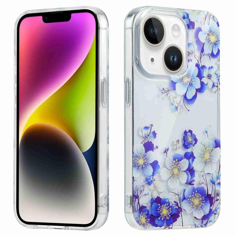 Θήκη τηλεφώνου Electroplated Symphony για iPhone 14 Plus (Λευκό Μπλε Λουλούδι)