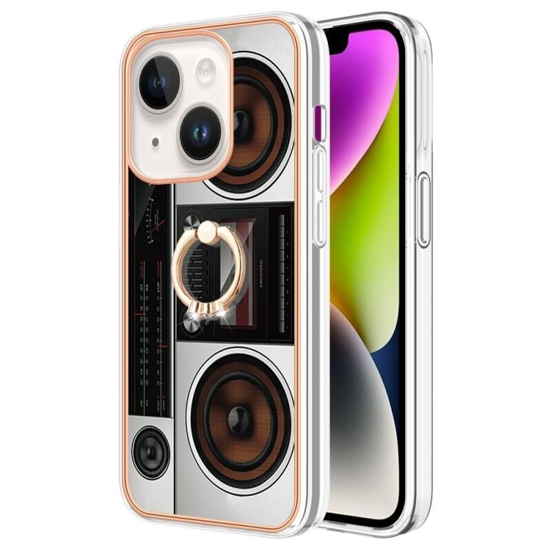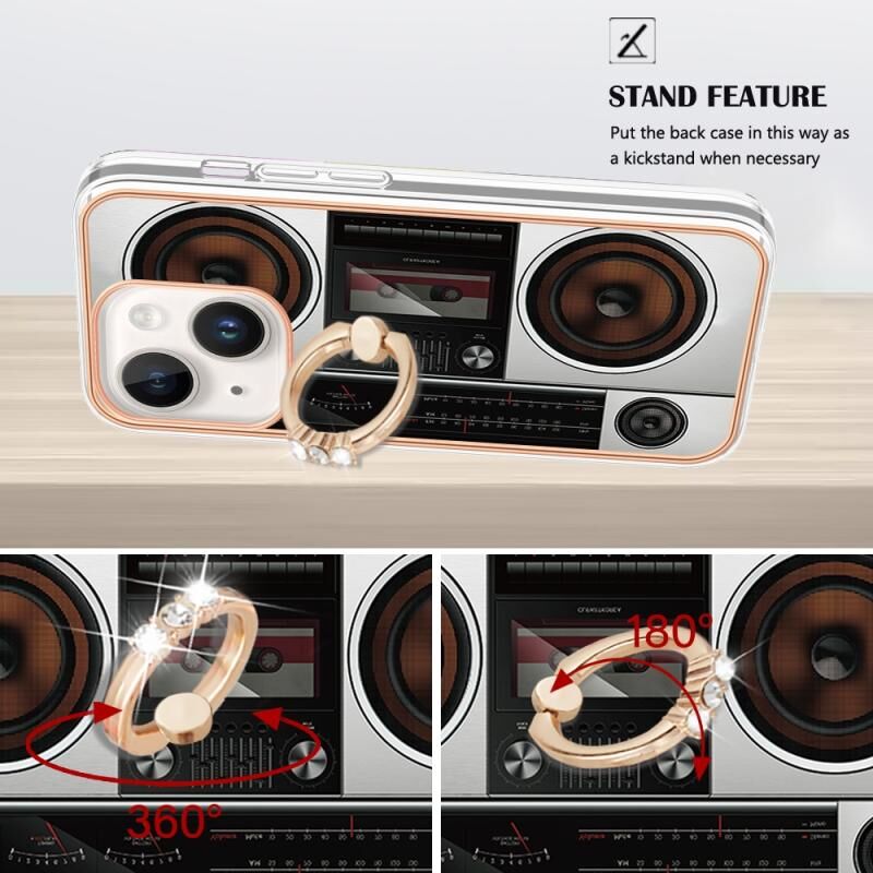 For iPhone 14 Plus Electroplating Dual-side IMD Phone Case with Ring Holder(Retro Radio)