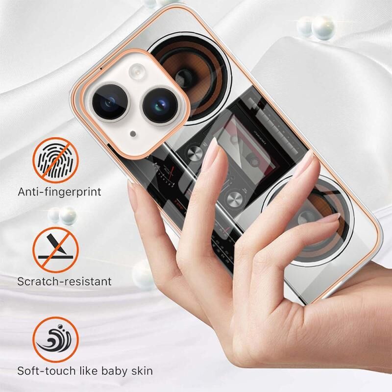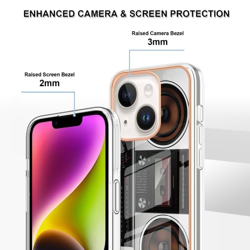 Θήκη τηλεφώνου για iPhone 14 Plus με ηλεκτρολυτική μαρμάρινη επένδυση IMD διπλής όψης (Ρετρό Ραδιόφωνο)