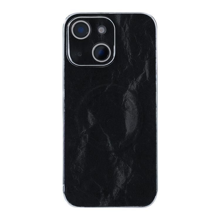 For iPhone 14 Plus Electroplating PC Snow Bark Texture MagSafe Phone Case(Black)