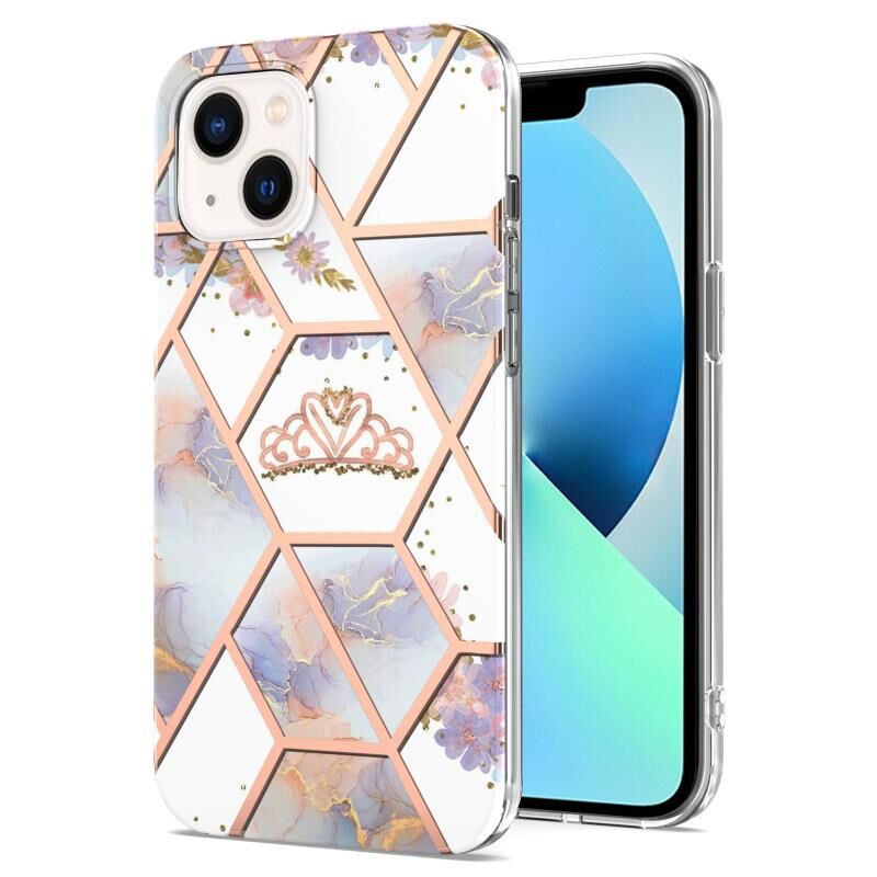 Θήκη για iPhone 14 Plus με ηλεκτρολυτική επιμετάλλωση, συνδυασμό μαρμάρου και λουλουδιών, από TPU, αντικραδασμική (Crown)