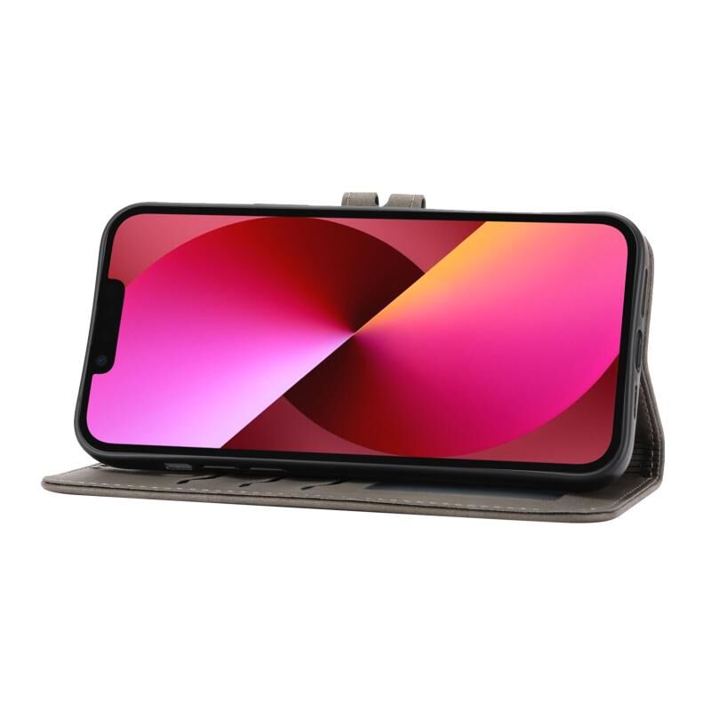 Θήκη τηλεφώνου από δέρμα με σχέδιο χαρούμενης γάτας σε ανάγλυφο για iPhone 14 Plus (Κόκκινο)
