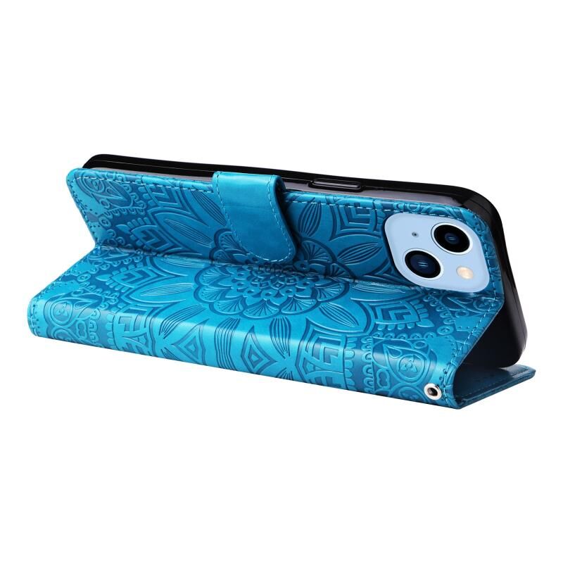 Θήκη τηλεφώνου δερμάτινη με ανάγλυφο ηλίανθο για iPhone 14 Plus (Πράσινο)