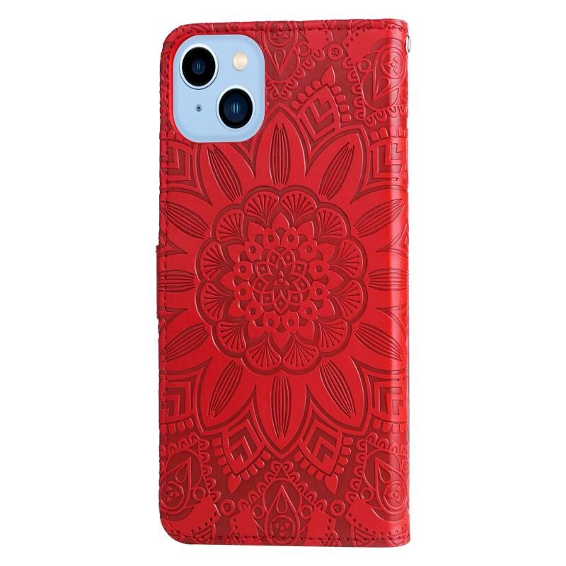 Θήκη τηλεφώνου δερμάτινη με ανάγλυφο ηλίανθο για iPhone 14 Plus (Πράσινο)