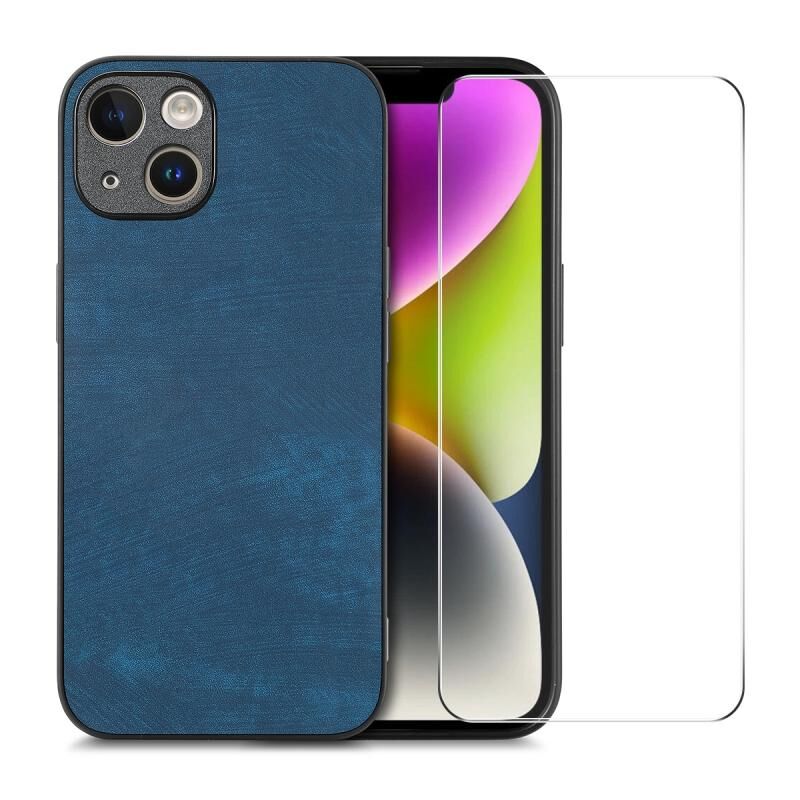 Θήκη κινητού τηλεφώνου για iPhone 14 Plus ENKAY από δέρμα retro με PC και προστατευτική μεμβράνη από γυαλί αλουμινίου-πυριτίου (Ροζ) (ENKAY)